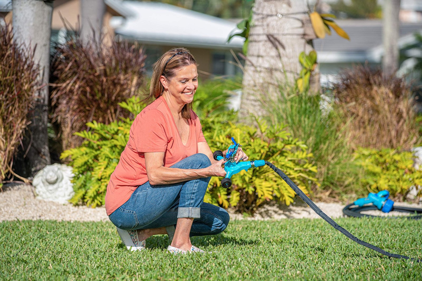 360 Sprinkler from AQUA JOE , by SUN JOE . GET EQUIPPED .