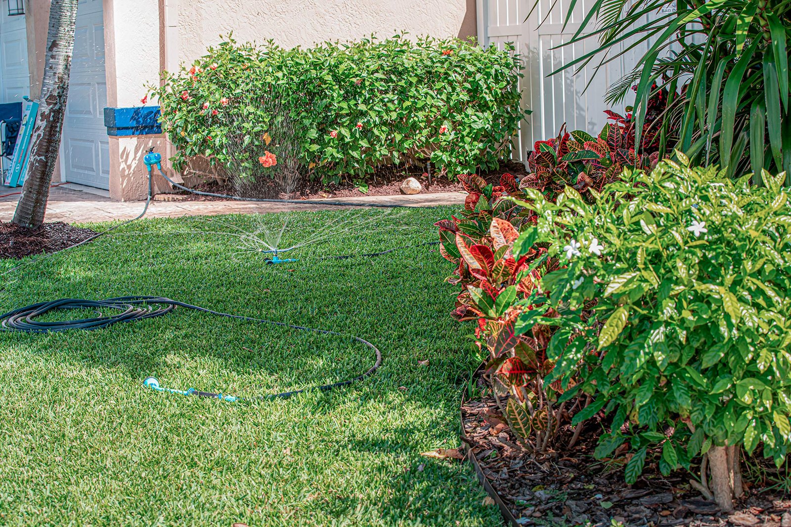- Low angle spray perfectly covers grass and flowers in an even mist