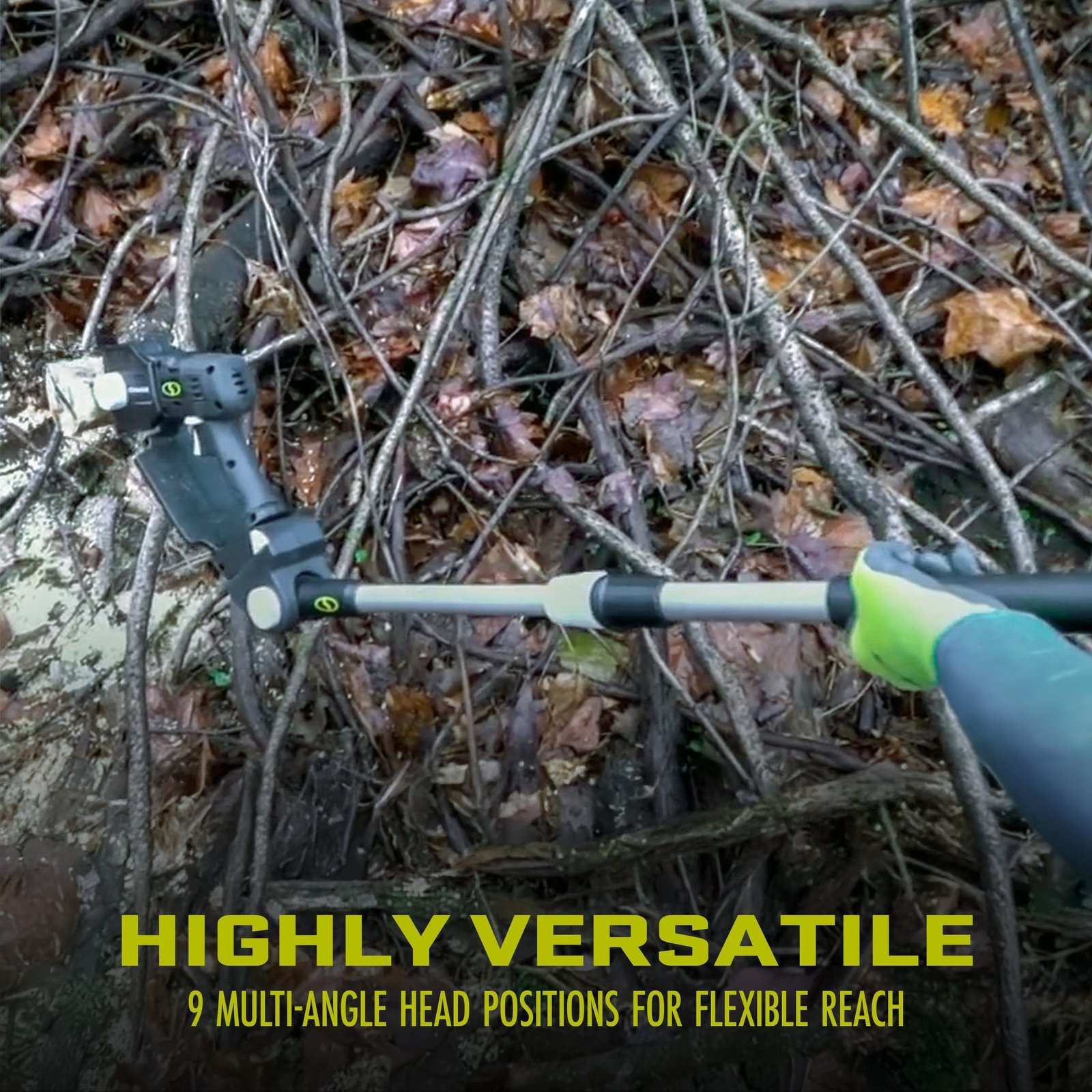 - HIGHLY VERSATILE: Later, when the limbs are down and there’s wood to be cut, the device quickly converts to a handheld chainsaw to make light work of loads of logs. And features 9 multi-angle head positions for flexible reach (-45° | -30° | -15° | 0° | 15° | 30° | 45° | 60° | 75°)
