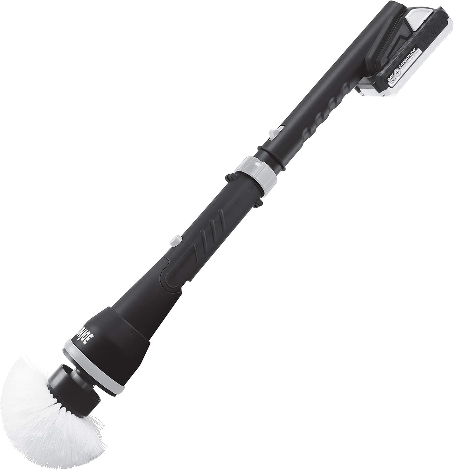 CLEAN HIGH SCRUB LOW WITH JOE! Take the tiring, tedious, repetitive work out of your cleaning to-do list with the 24V-PWSCRB-LTW 24-Volt* Cordless Power Scrubber from SUN JOE! No more endless scrubbing by hand – tackle the toughest messes, mold and mildew, stains and more at home or on-the-go with cordless convenience. Perfect anywhere power is at a premium, like the laundromat, garage, pool or patio, SUN JOE’s power scrubbing dynamo also makes light work of household grime in the kitchen, laundry room or bathroom. Simply select from the four included, easy to clean, scrubbing brush heads to suit the task. The rotating head spins at two variable speeds — LOW (600 rpm) and HIGH (1000 rpm) — for light- to heavy-duty cleaning tasks. Effortlessly clean large surfaces in less time with the round brush or large flat brush head; Or, get in grout lines and corners with the cone brush and small flat brush. And SUN JOE doesn’t stop there! Go beyond the kitchen and bathroom with IONMAX power — the rechargeable lithium-ion battery system with a world of possibilities. Clean the car, tires hub caps, scrub gunk off of the grill, wash the windows, get grime off of grout and granite, and so much more! Reach high or low without bending! SUN JOE extends from 27 in. to 50 in. with the included pole attachment to get to from those hard-to-reach corners of your shower and tub without the pain and strain on your back and knees. And when the job is done, simply remove the extension pole for compact, convenient storage in the closet or cabinet. Clean the whole house — from top to bottom and corner to corner — with SUN JOE! GET EQUIPPED.