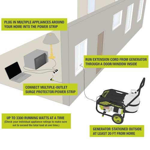 - 4100 Starting Watts/3300 Running Watts of power to run multiple appliances for up to 9 hours of continuous runtime on a 20 LB tank!