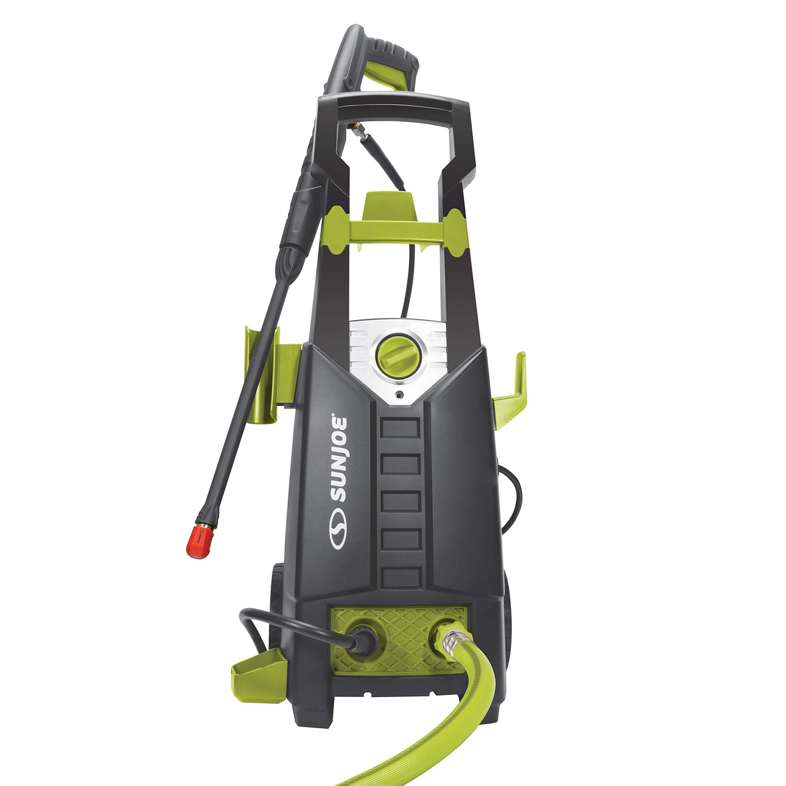 GRIME FIGHTER. Tackle your toughest home, outdoor and auto-cleaning tasks with next-generation grime fighting technology: SPX2598-MAX 13-Amp Electric Pressure Washer from SUN JOE. When grime gets the upper hand, fight back against your toughest home, outdoor and auto cleaning tasks with SPX2598-MAX. Combining the power of gas with the performance of an electric, MAX is made for those who expect the most out of their machines. It’s packed with the most-requested features for your most challenging chores — like a rugged 20-foot high-pressure hose, on-board 1 liter foam cannon, a 35-foot power cord with built-in GFCI, and exclusive Total Stop System technology to save both pump and power when the trigger is not engaged. SPX2598-MAX’s eco-friendly 13-amp electric motor packs a powerful punch – up to 2000 pounds per square inch – to break down dirt and grime, and pumps up to 1.6 GPM max flow rate to rinse away tough oil stains, mildew, caked on mud, rust and other stubborn dirt and deposits. And with 3 on-board Quick Connect nozzles, you can quickly customize the spray to suit the chore. Choose from 0, 15 and 40; swap nozzles in seconds and switch from punishing pinpoint jet to powerful fan spray. From start to finish, you can count on SPX2598-MAX for the continuous, reliable power + performance that you’ve come to expect from America’s leading eco-friendly brand of pressure washers. So, when there’s dirty work to be done, take it to the MAX with SUN JOE!
